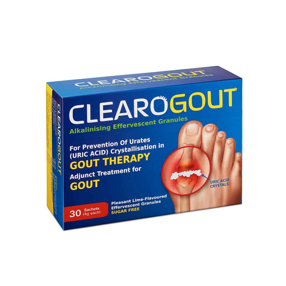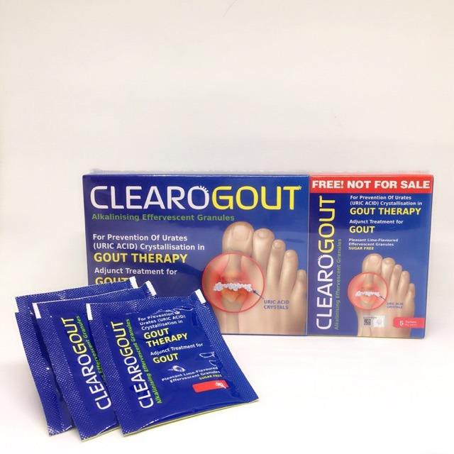 Live-Well CLEAROGOUT Gout Therapy 60 14 Free Sachets FREE EXPRESS SHIPPING. Live-Well CLEAROGOUT Gout Therapy 30 7 sachets. Clearogout Alkalinising Effervescent Granules For prevention of urates uric acid crytallisation in gout therapy Adjuct treatment for gout.